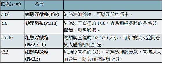 近年來空氣污染議題逐漸被國人所重視,其中PM2.5對人體的影響較大,因為PM2.5可穿透肺部氣泡,直接進入血管中隨著血液循環全身。PM即particulate matter(懸浮粒子),粒徑大小有別,小於或等於2.5微米(μm)的粒子,就稱為PM2.5,通稱細懸浮微粒,單位為微克/立方公尺(μg/m3)。