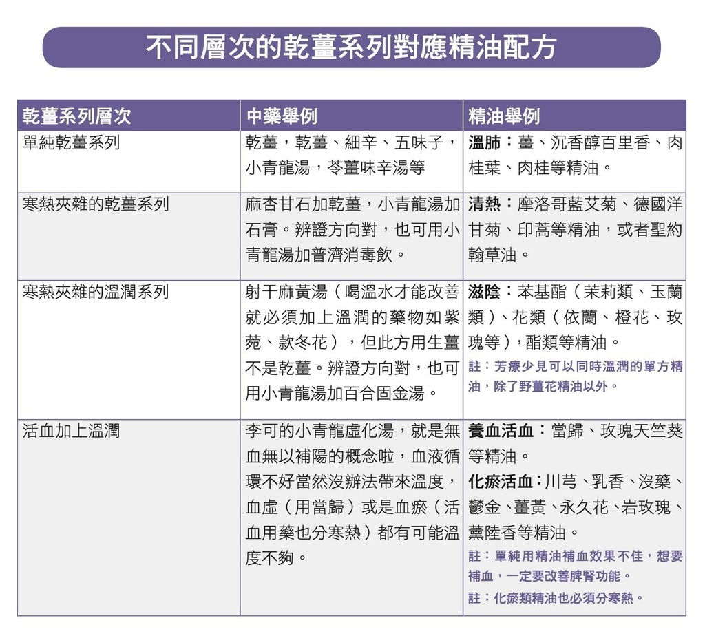芳療也是可以組合成 小青龍虛化湯,就是表格層次的運用。